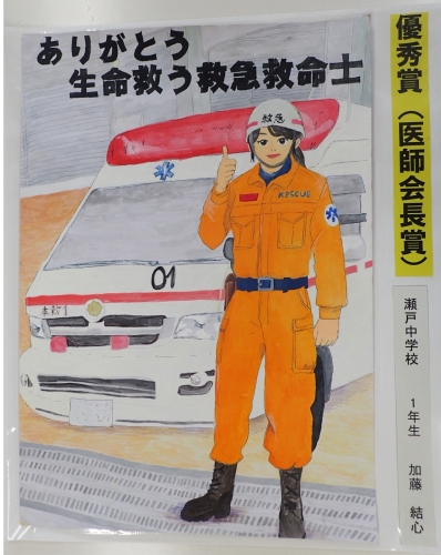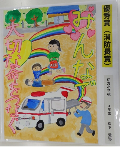 八幡浜市、伊方町の小学生と中学生を対象に救急に関するポスターを募集し、129作品の応募がありました。
