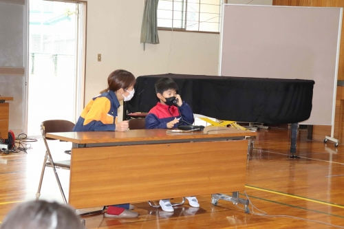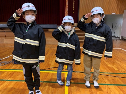 体育倉庫室で煙体験を行いましたが 煙で前が見えずびっくりしていたよう です。 今回の体験を生かして、1番大切な 「いのち」を大切にする行動がとれる よう今後も地域や学校で行う防災・消 火訓練などに参加してほしいです。