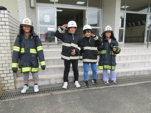 事前に消防署の仕事の勉強をされて いたようで、たくさんの質問を準備し てもらっており授業で楽しくお話しさ せてもらいました。 消防署や消防団の仕事について興味 を持って体験してもらえてよかったで す。